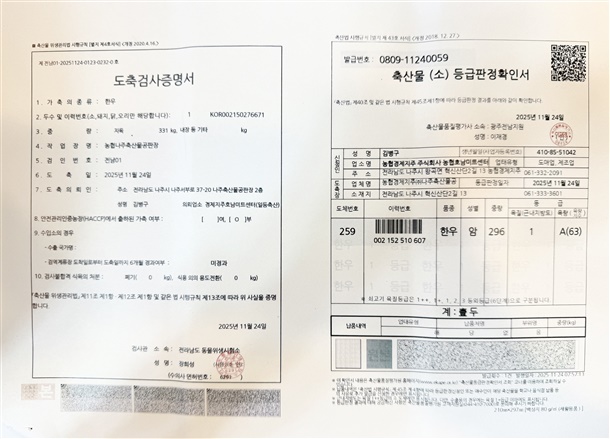 도축후 한우 전문 직판장에 납품하고
